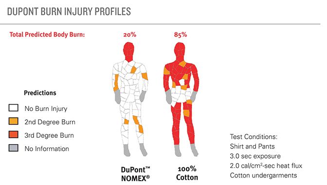 Thermo-Man® tests demonstrate the higher level of flame protection that multilayer garments offer. Material selection and garment designs balance protection, mobility and heat stress.